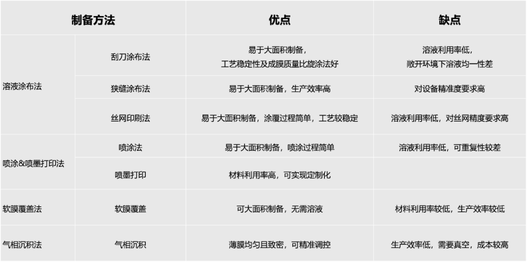 大面积钙钛矿薄膜制备技术对比:
