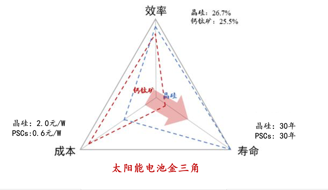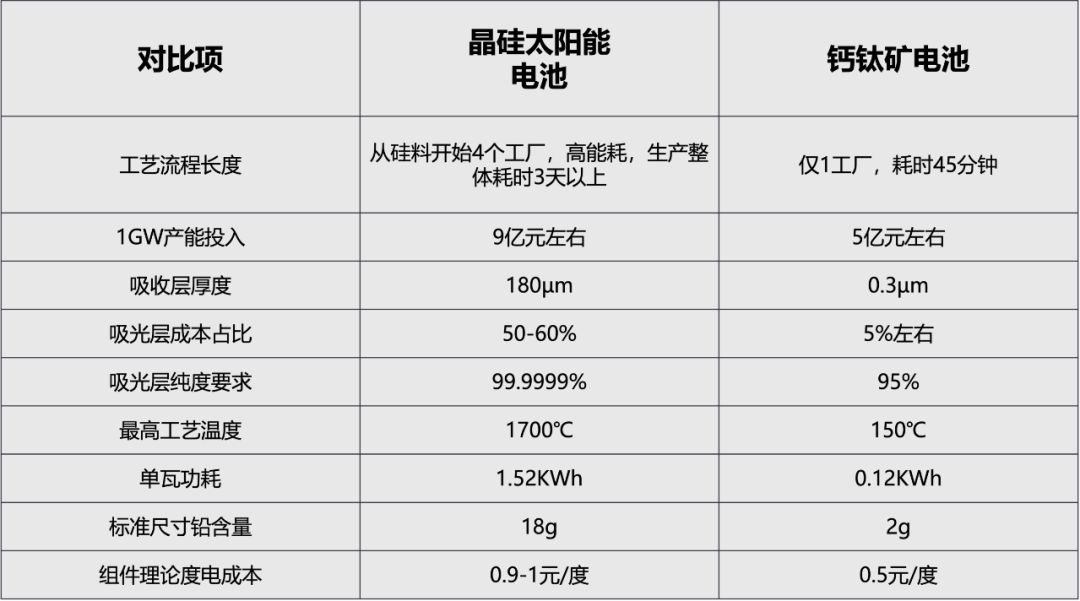 钙钛矿太阳能电池方向的创业及投资热度这几年在持续升温。主要缘于钙钛矿太阳能电池较晶硅光伏电池而言,具有更高的理论光电转换效率、更优的综合成本优势,更轻质的组件且刚柔性能兼备等突出优势。