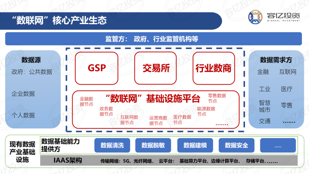 数据要素流通基础设施在未来的产业具象就是“数联网”,什么是数联网?数联网就是构建在通讯基础网络之上的,通过专用的“数据枢纽”、“数联猫”构建的支撑数据要素快速共创价值、合规流转的应用层网络。通过数联网链接不同区域交易所、各类数据交易中心、基石数商、行业数商、各类GSP、核心数据源以及各类的用数方。
