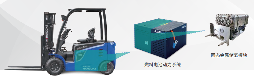 固态金属储氢模块作为低压常温储氢载体,更换便捷,不仅颠覆了传统氢气运输、存储、加注方式,还解决了叉车配重问题,消除了客户安全顾虑。该产品提升了使用便利性,降低了运营成本,解决了内燃机叉车排放高、电动叉车续航时间短、气态氢瓶燃料电池叉车充氢难等行业痛点,同时助力工业领域清洁低碳氢的利用,顺利加快了氢能工业车辆的市场推进。