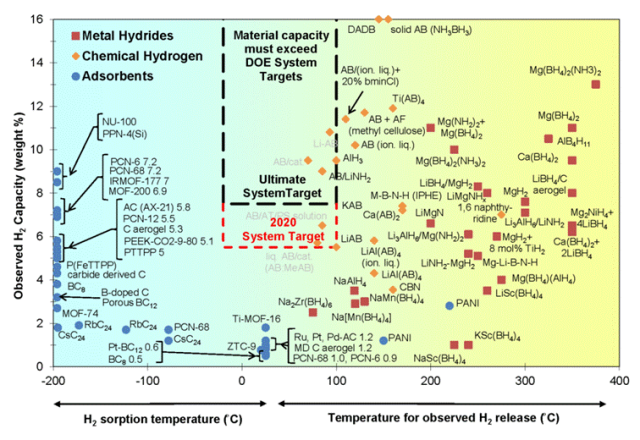 Hydrogen gravimetric capacity of proposed storage materials for hydrogen fuel
